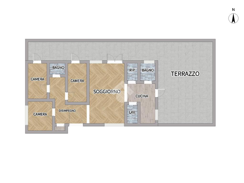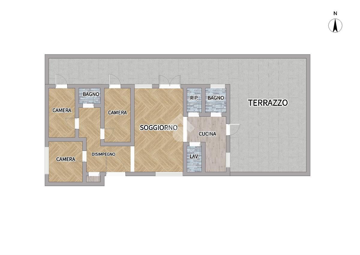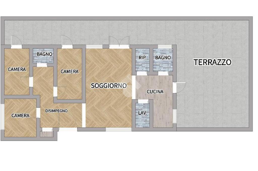 Situato al terzo e ultimo piano di una palazzina recentemente ristrutturata, senza ascensore, l'appartamento si presenta in ottime condizioni interne. La disposizione degli spazi comprende una zona giorno spaziosa con ingresso, soggiorno doppio, cucina abitabile, bagno di servizio, vano lavanderia e ripostiglio. La zona notte ospita tre confortevoli camere da letto, un ulteriore ripostiglio e un secondo bagno.