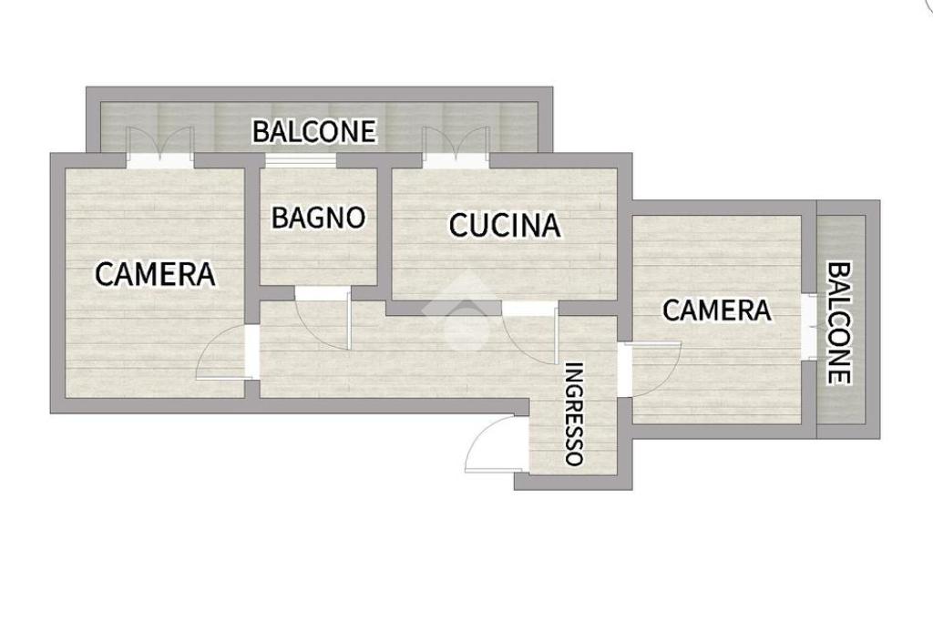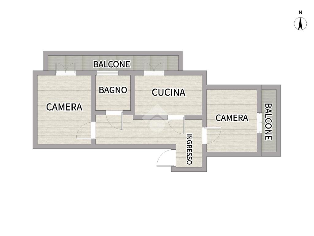 L’immobile, posto a piano rialzato, è composto da: ingresso, 2 camere, cucina e bagno. La presenza di due balconi garantisce buona luminosità e gradevoli affacci.