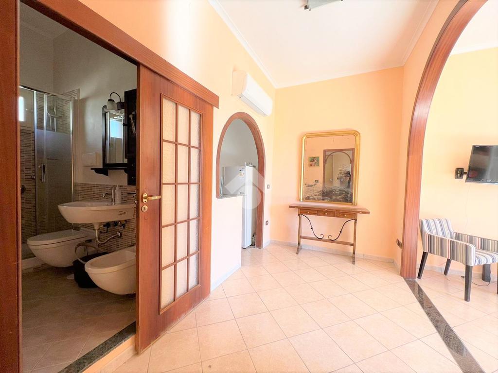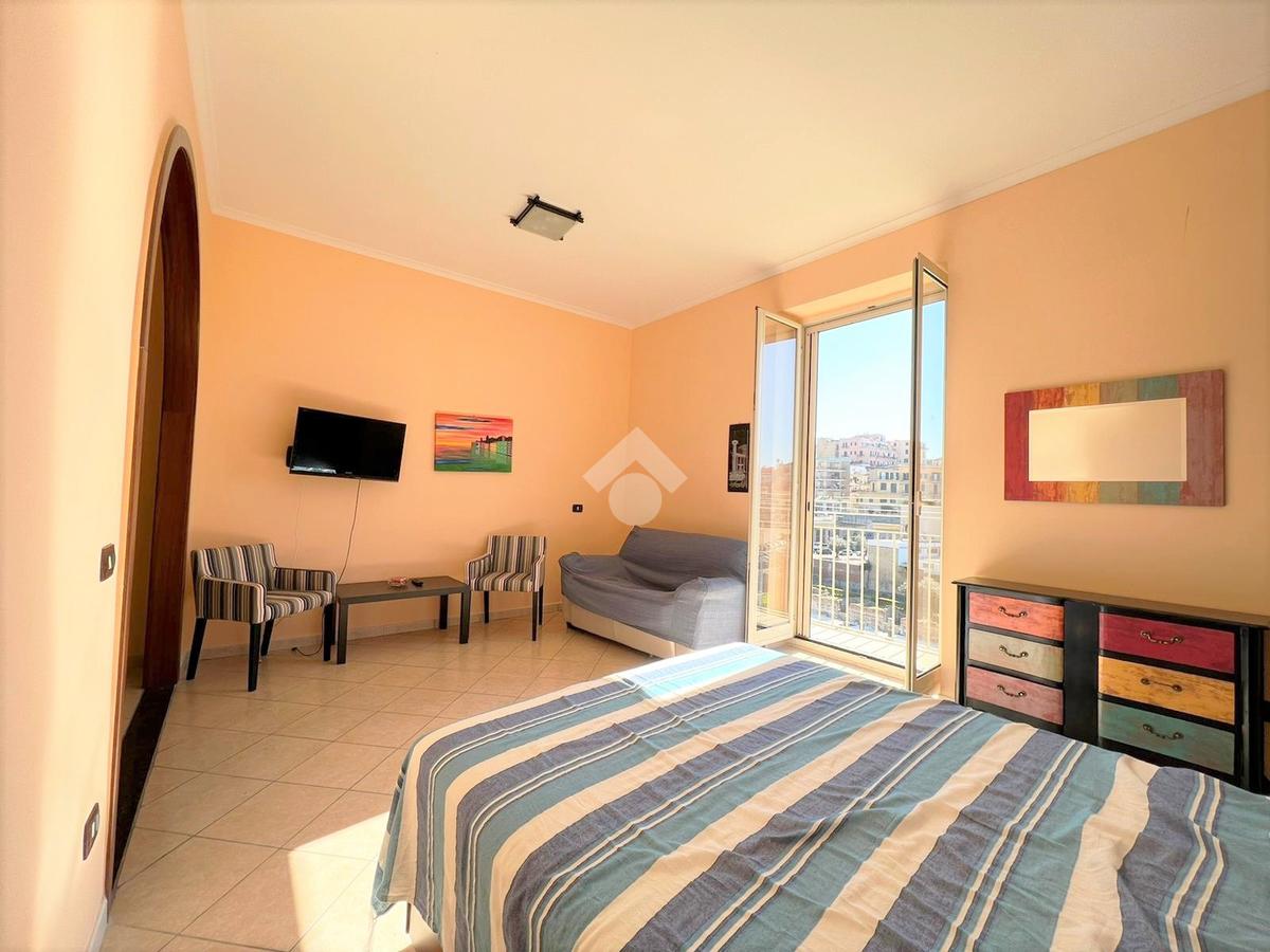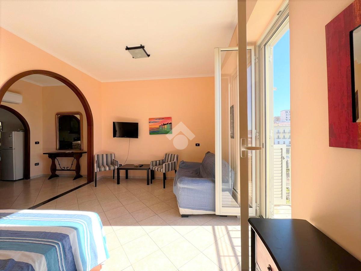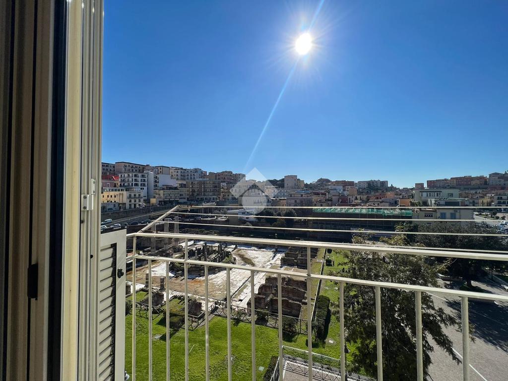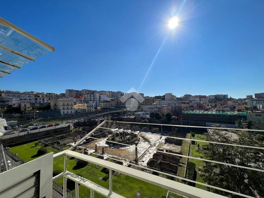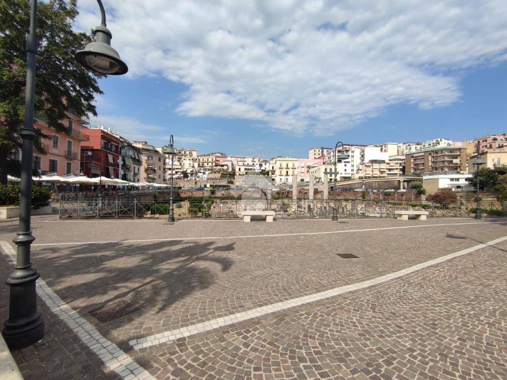 L’immobile, situato in zona centralissima, è posto al quarto ed ultimo piano di uno stabile senza ascensore e gode di una splendida vista sul Tempio di Serapide e sul suggestivo Golfo di Pozzuoli.